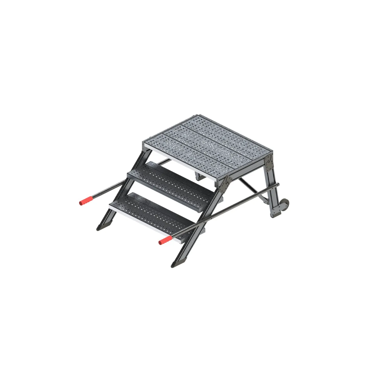 Con una anchura de paso de 600 mm y longitud de plataforma de 600 mm, ofrece un espacio cómodo para trabajar en altura.