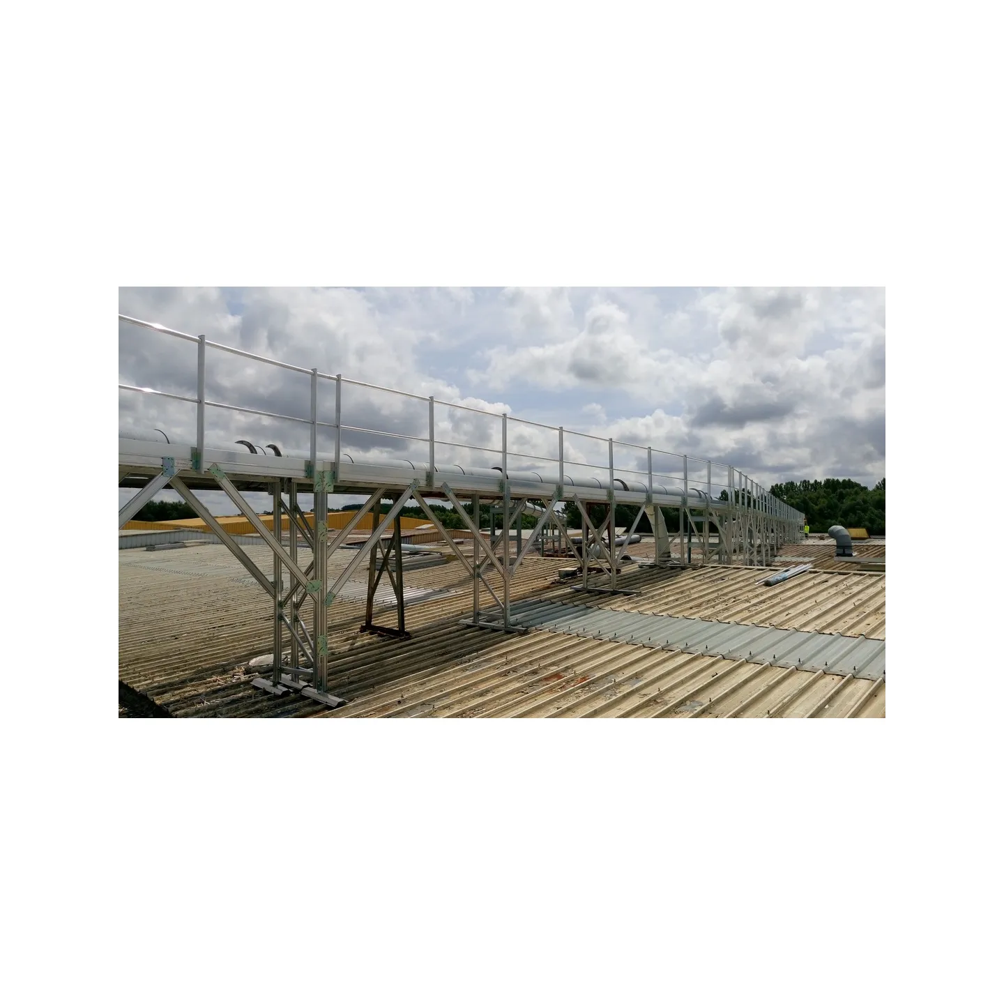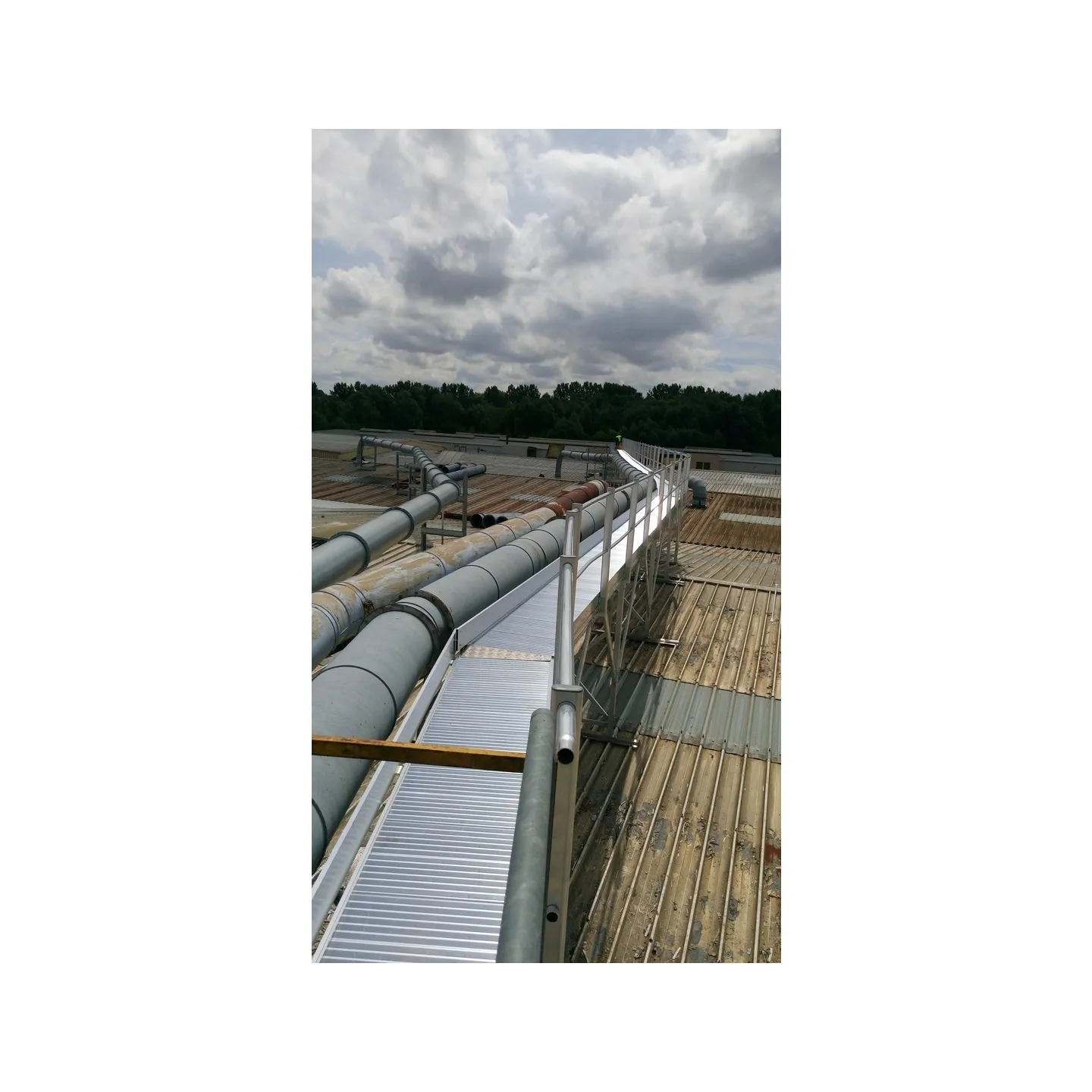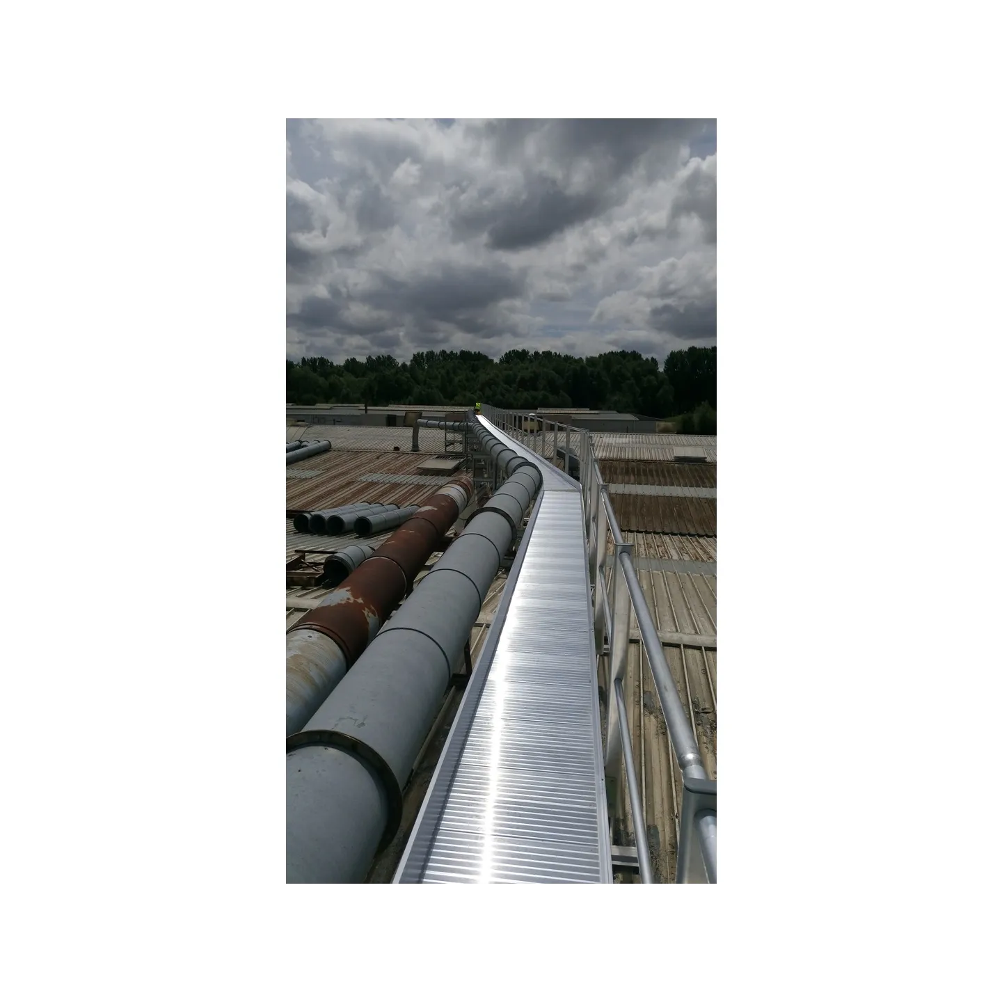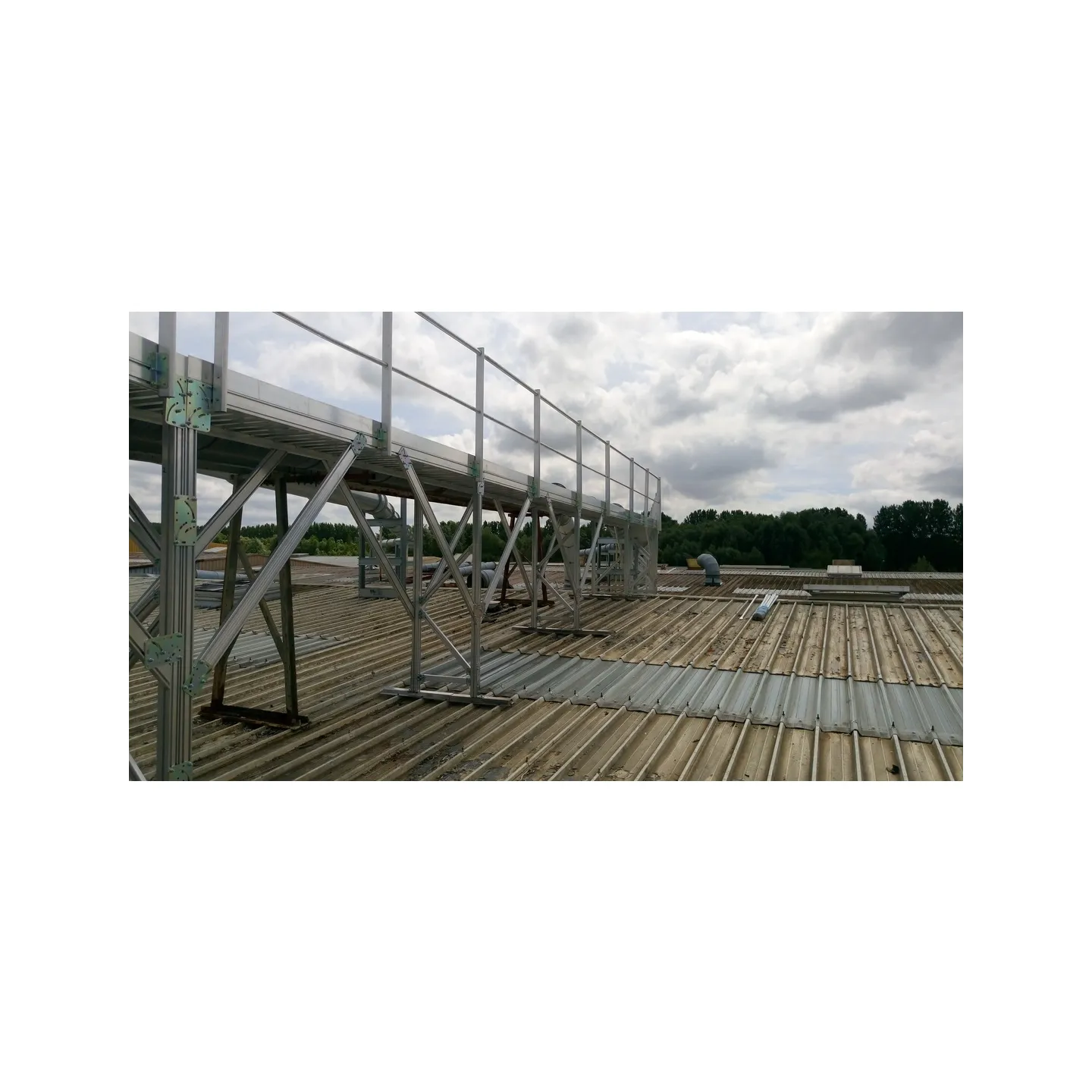 Pasarela de circulación de 63 metros de longitud instalada sobre una cubierta de chapa .