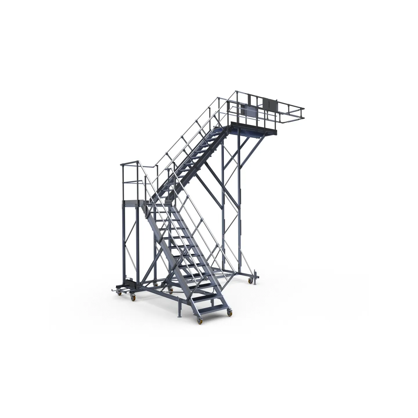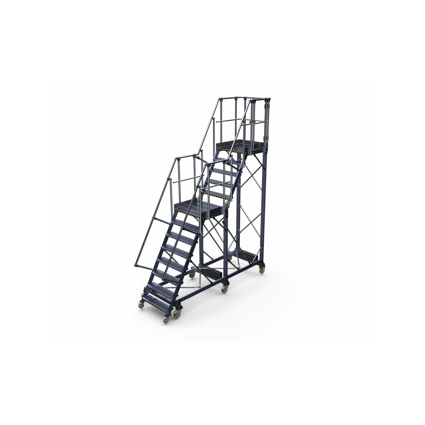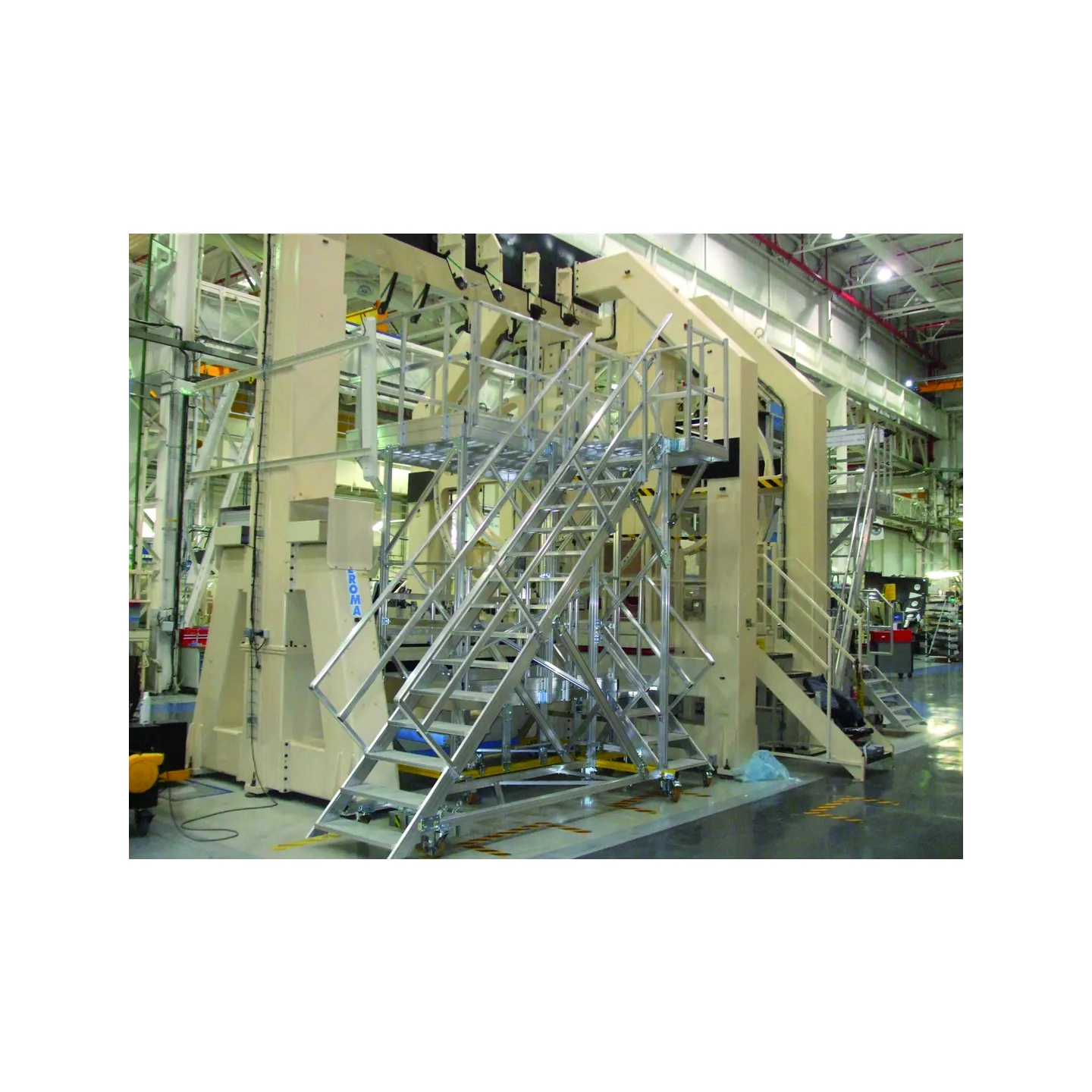 Plataforma de trabajo móvil de doble nivel para permitir múltiples intervenciones sobre una misma máquina.