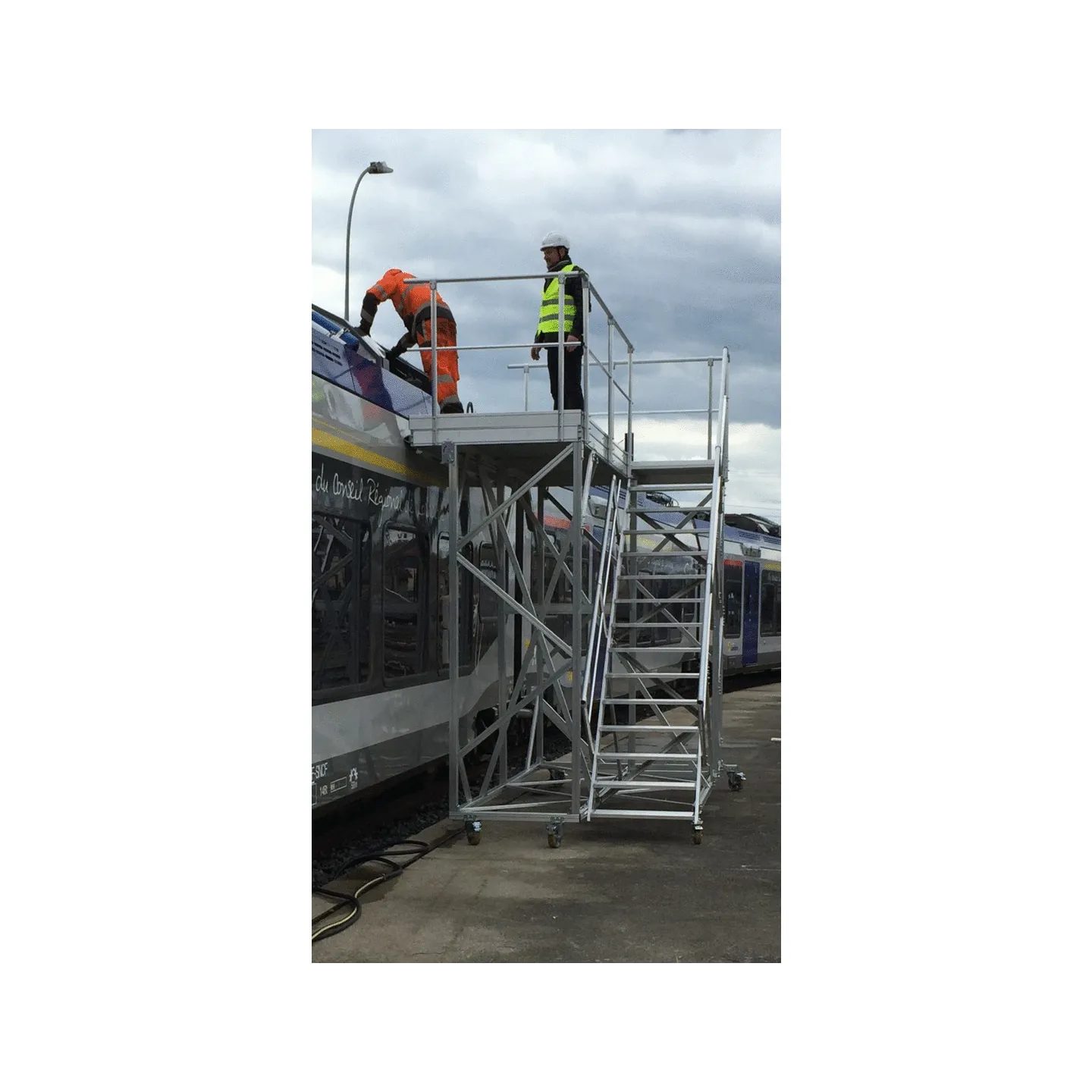 Plate-forme de maintenance pour bloc électrique d'une rame de TGV.