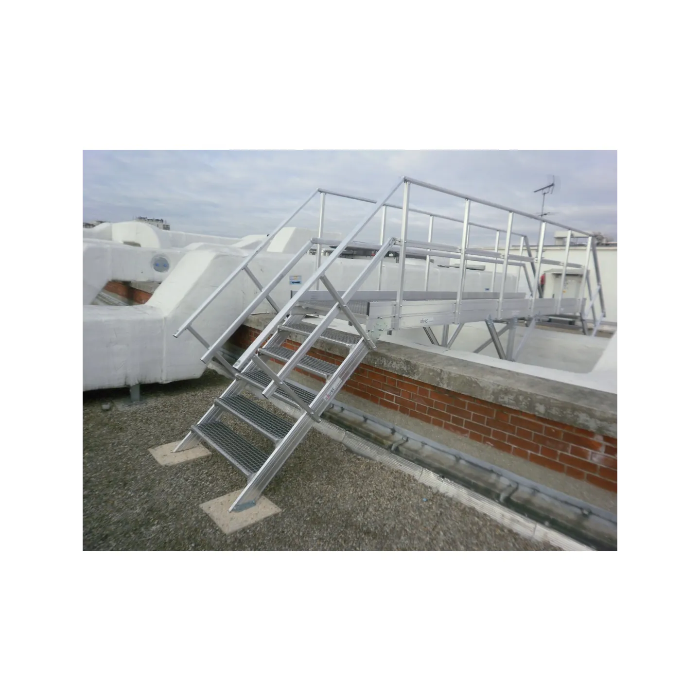 Pasarela de circulación en aluminio entre dos terrazas.