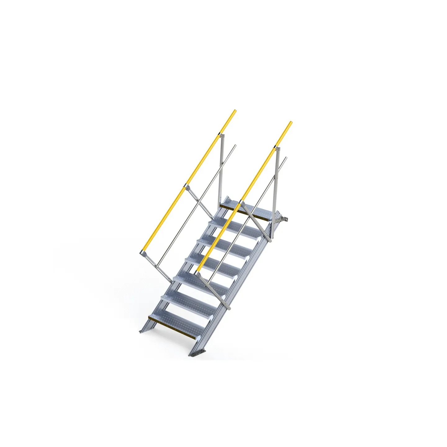 Descubra nuestra gama de escaleras industriales a 45°, con un ancho de paso de 800 mm. Nuestras escaleras de aluminio están diseñadas para responder a sus necesidades de acceso seguro en entornos industriales.