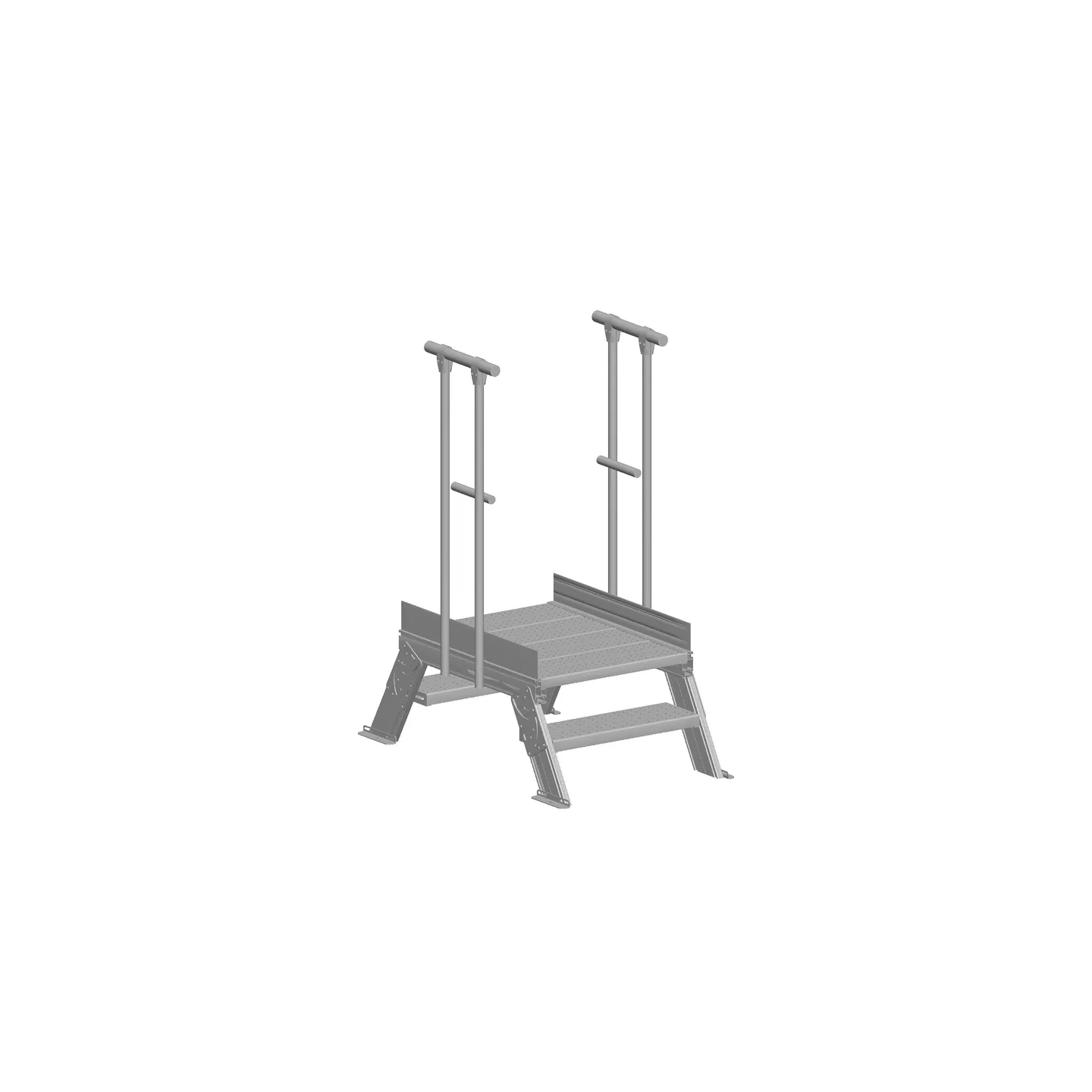 En versión estándar la plataforma se entrega montada con 2 guarda-cuerpos posibilidad de ir desmontados para facilitar su trasnsporte.