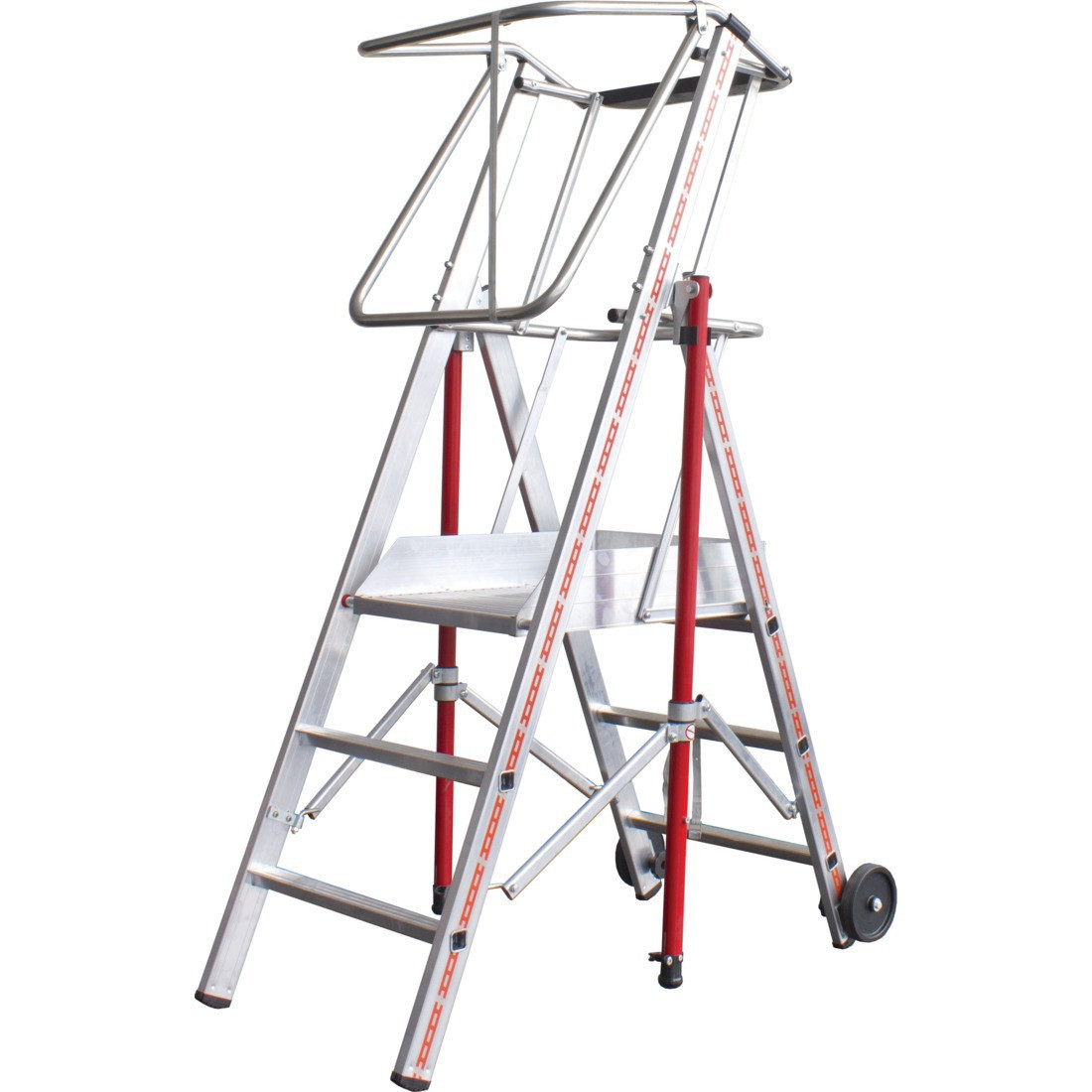 La plataforma individual sobre ruedas GEEKO.FIX es una plataforma con barandilla de elevación vertical automática que garantiza la seguridad colectiva del operario.