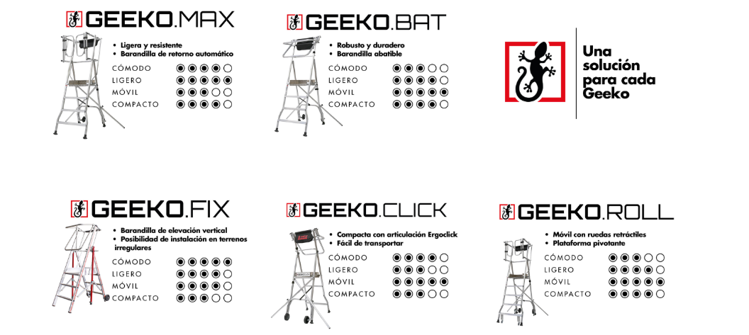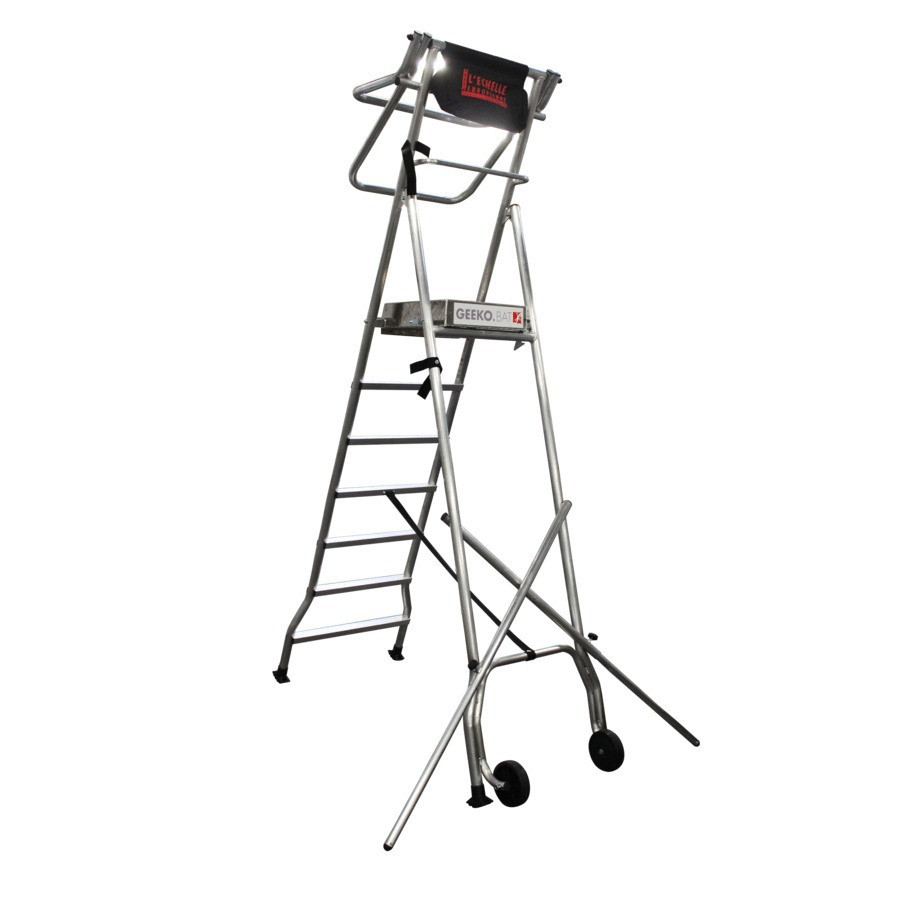 La plataforma sobre ruedas GEEKO.BAT es una PIRL segura y ligera, ideal para todos los trabajos en interiores y exteriores.