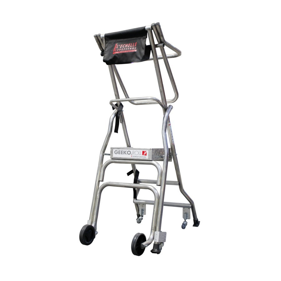 La plataforma individual sobre ruedas Geeko.roll está equipada con una bolsa de herramientas profunda para guardar tornillos y herramientas voluminosas, y ruedas retráctiles. Esta nueva plataforma le ahorrará tiempo en sus operaciones de picking y almacenamiento.