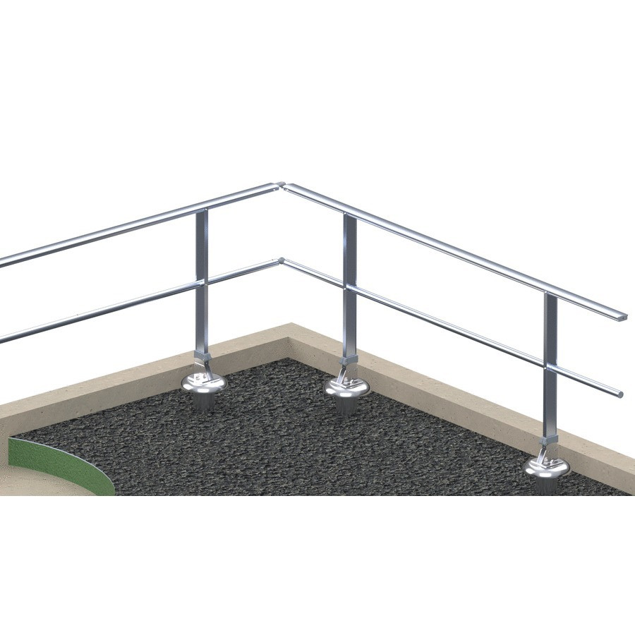 | Barandilla FASTGUARD, versión recta con fijación sobre losa impermeabilizada, barrote intermedio y rodapié | |