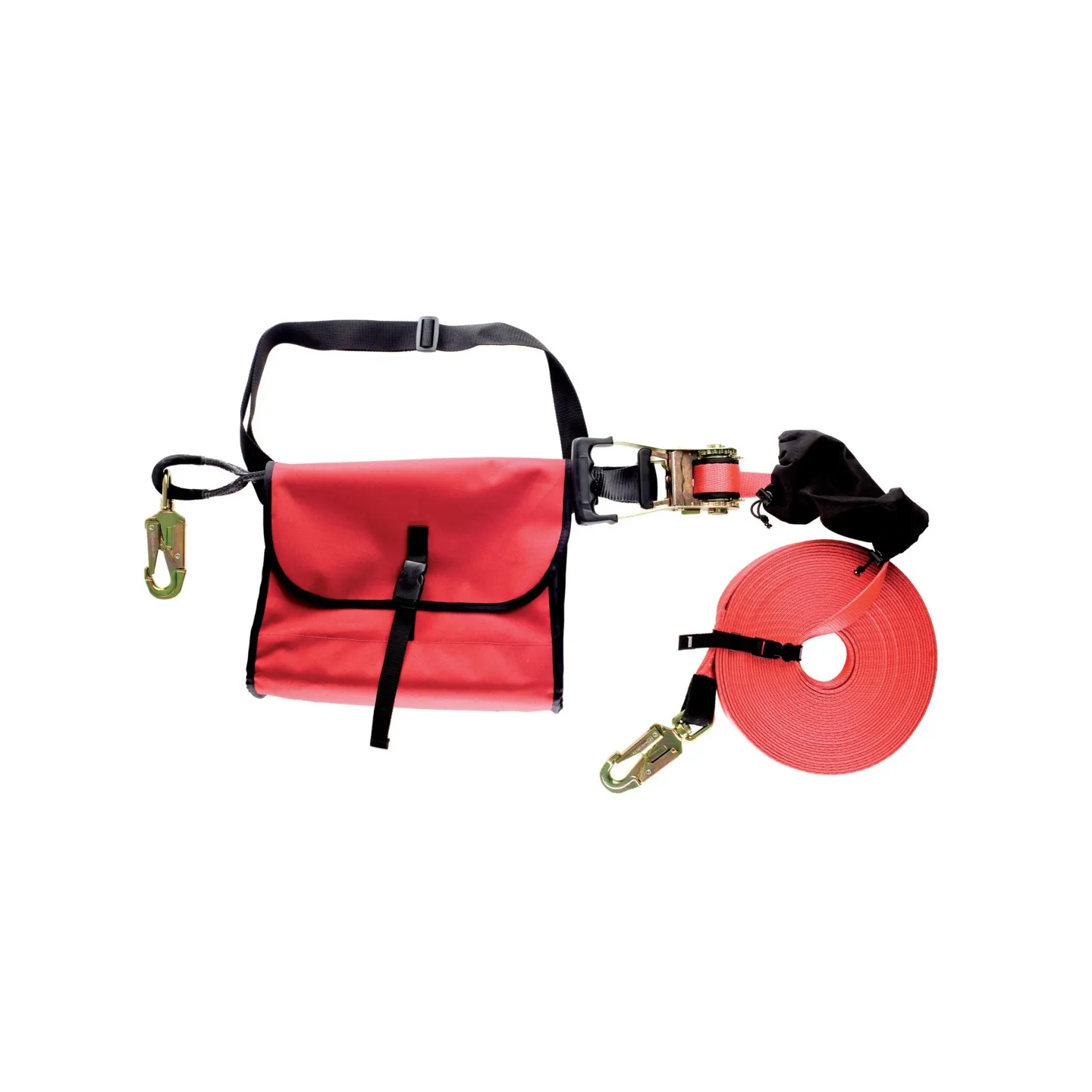 Suministrada con 2 mosquetones en acero de rosca apertura 25 mm y 2 conectores en acero de doble lengüeta abertura 21 mm.