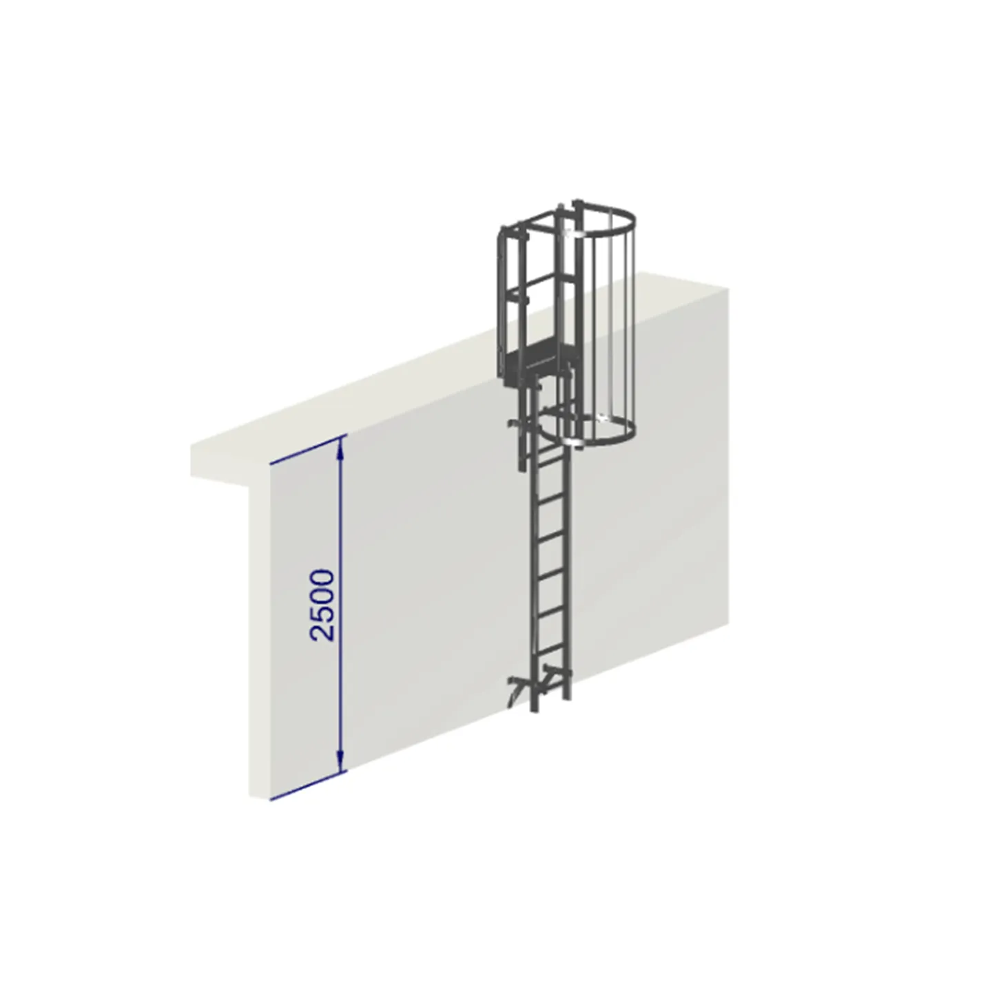 Escalera de protección dorsal altura 2500 mm - Crinolina con aros de protección EN ISO 14122-4
