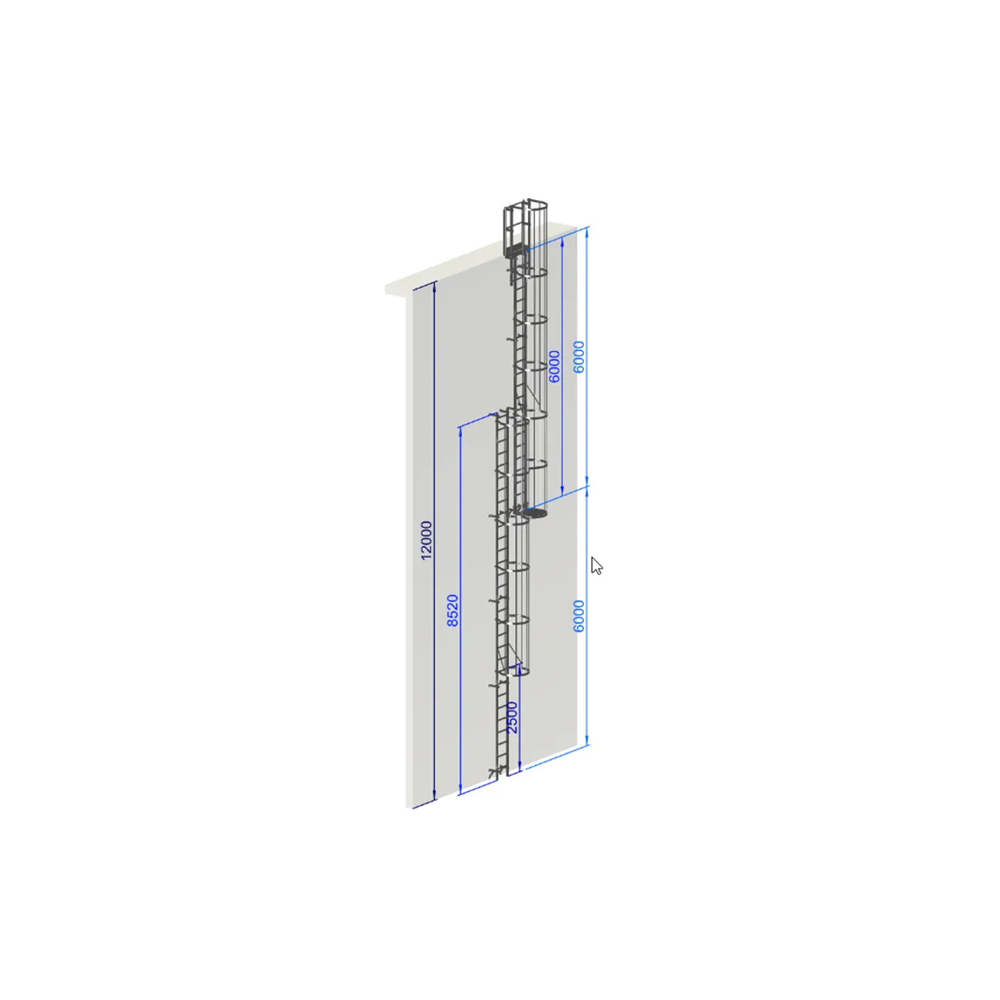 Escalera de protección dorsal - Crinolina altura 12 000 mm EN ISO 14122-4