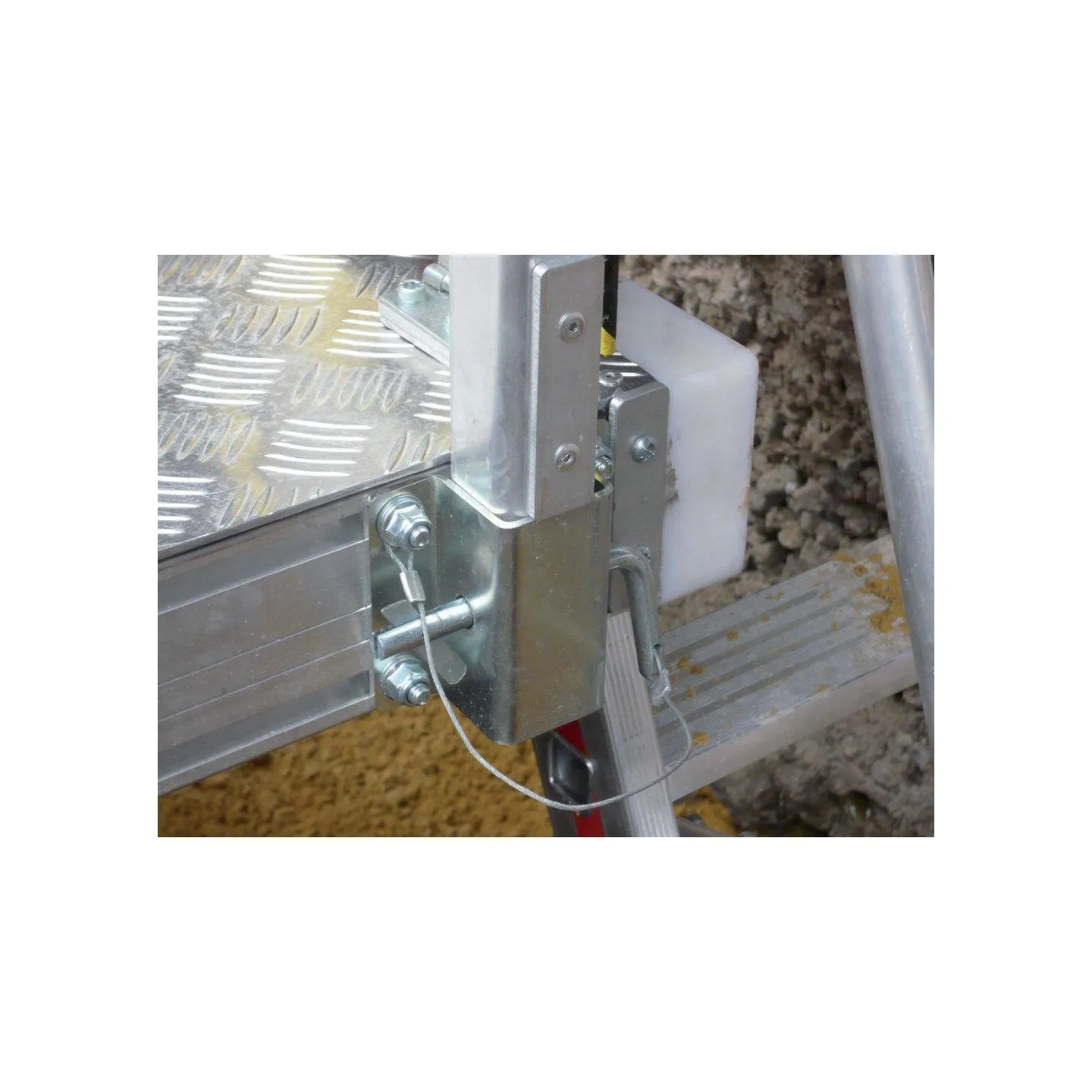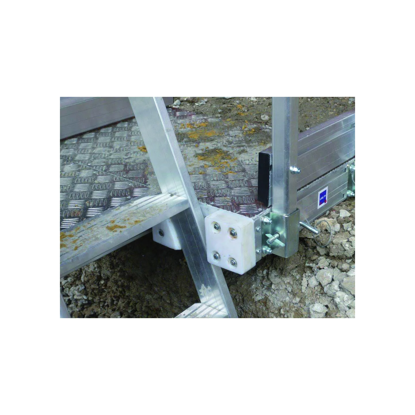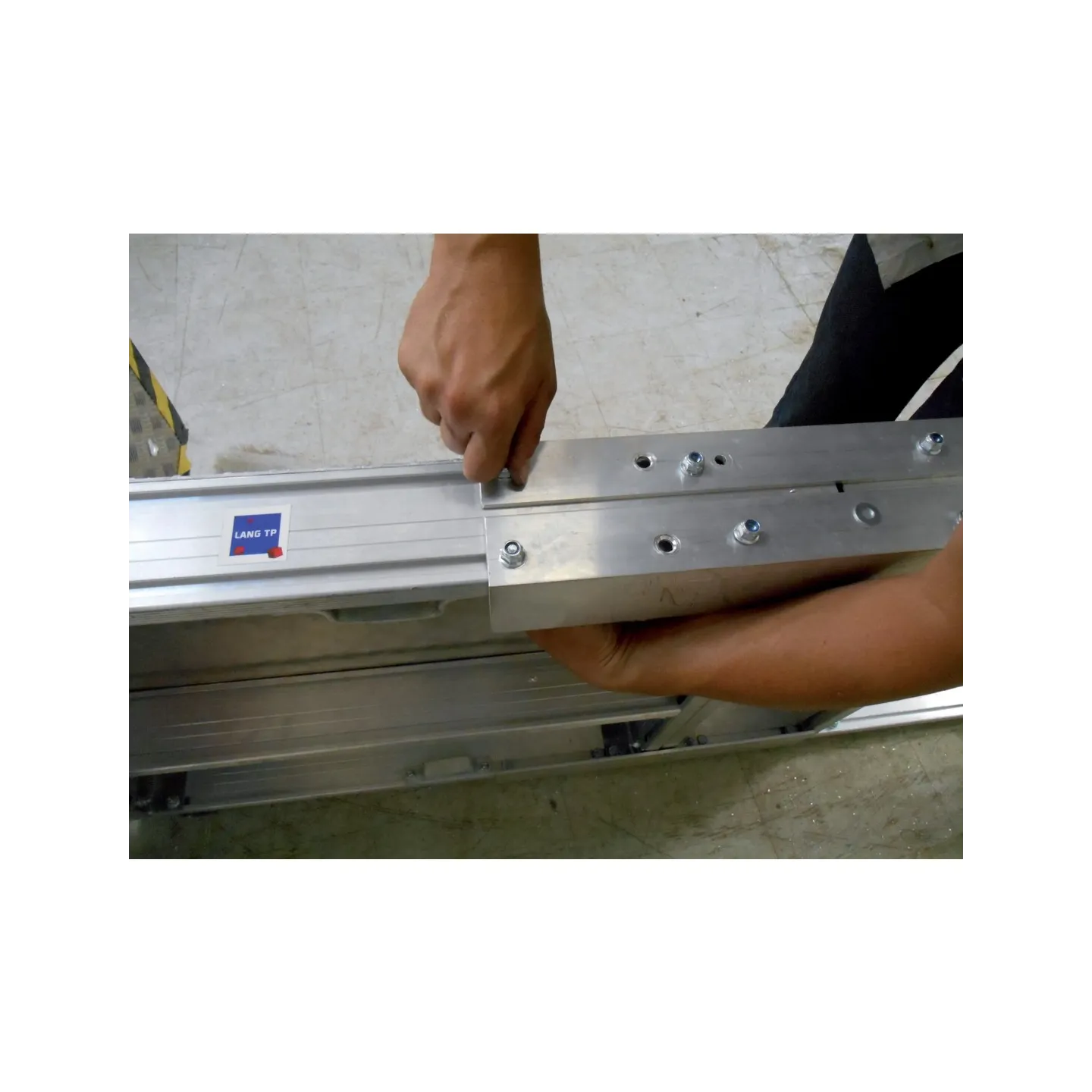 Unión del alargo de la plataforma por 2 guías y un sistema rápido de atornillado.