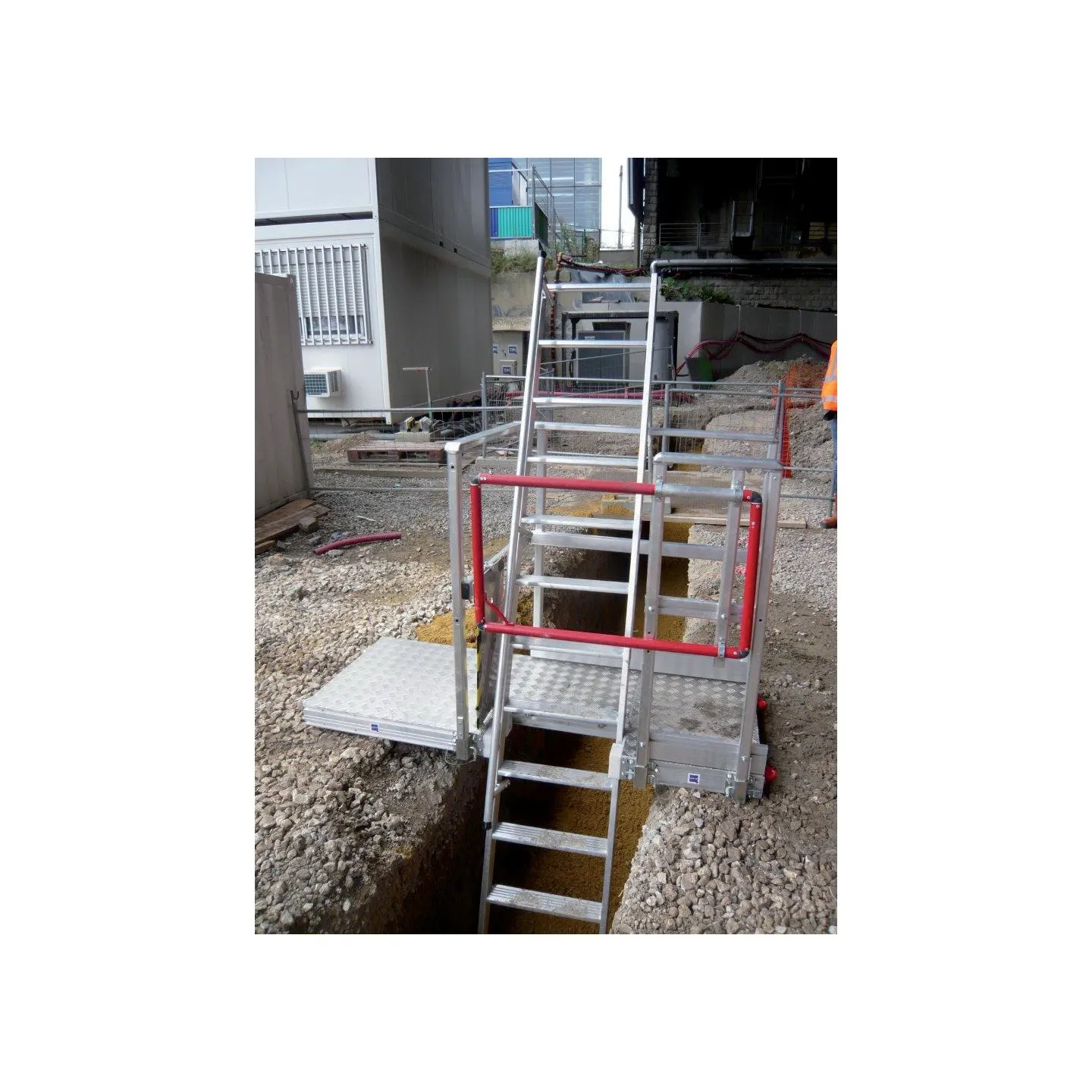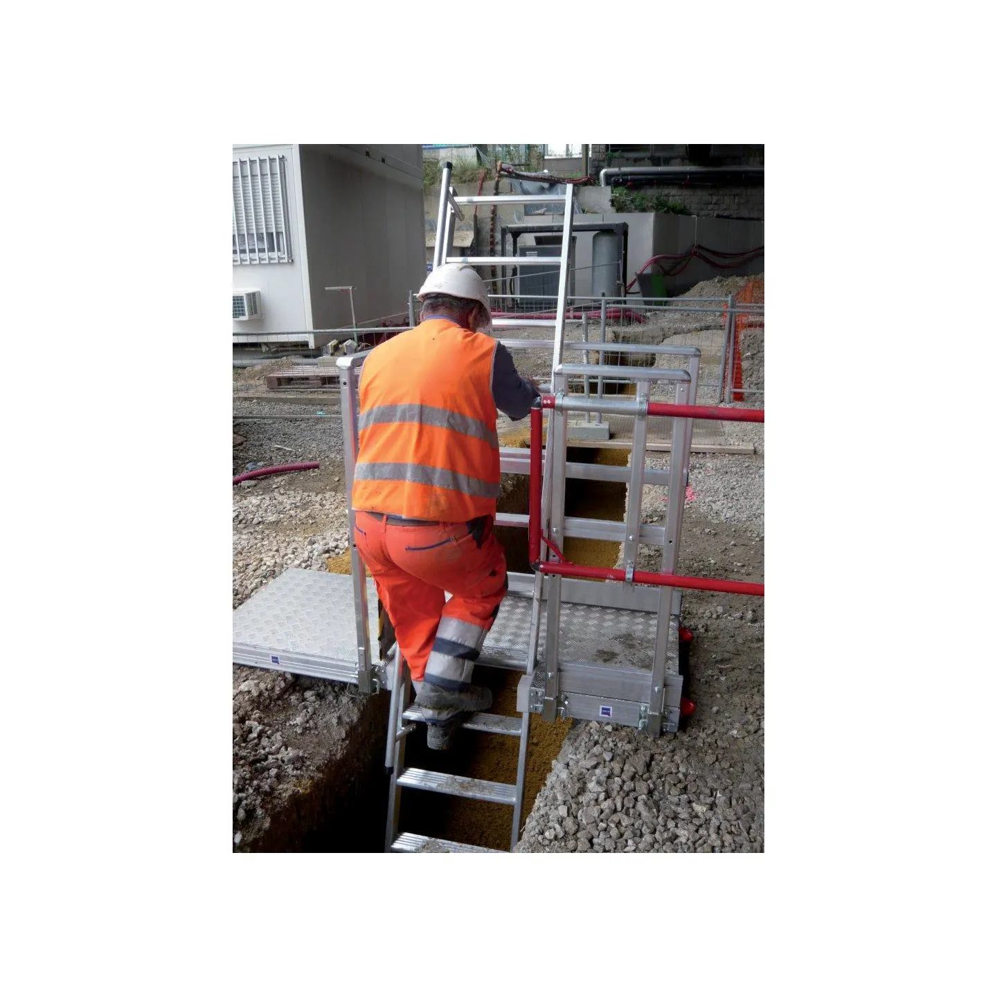 Plataforma en seguridad concebida para acceder a zanjas en medio urbano en exterior, en obras de cañerías, tubos y saneamiento de la red.