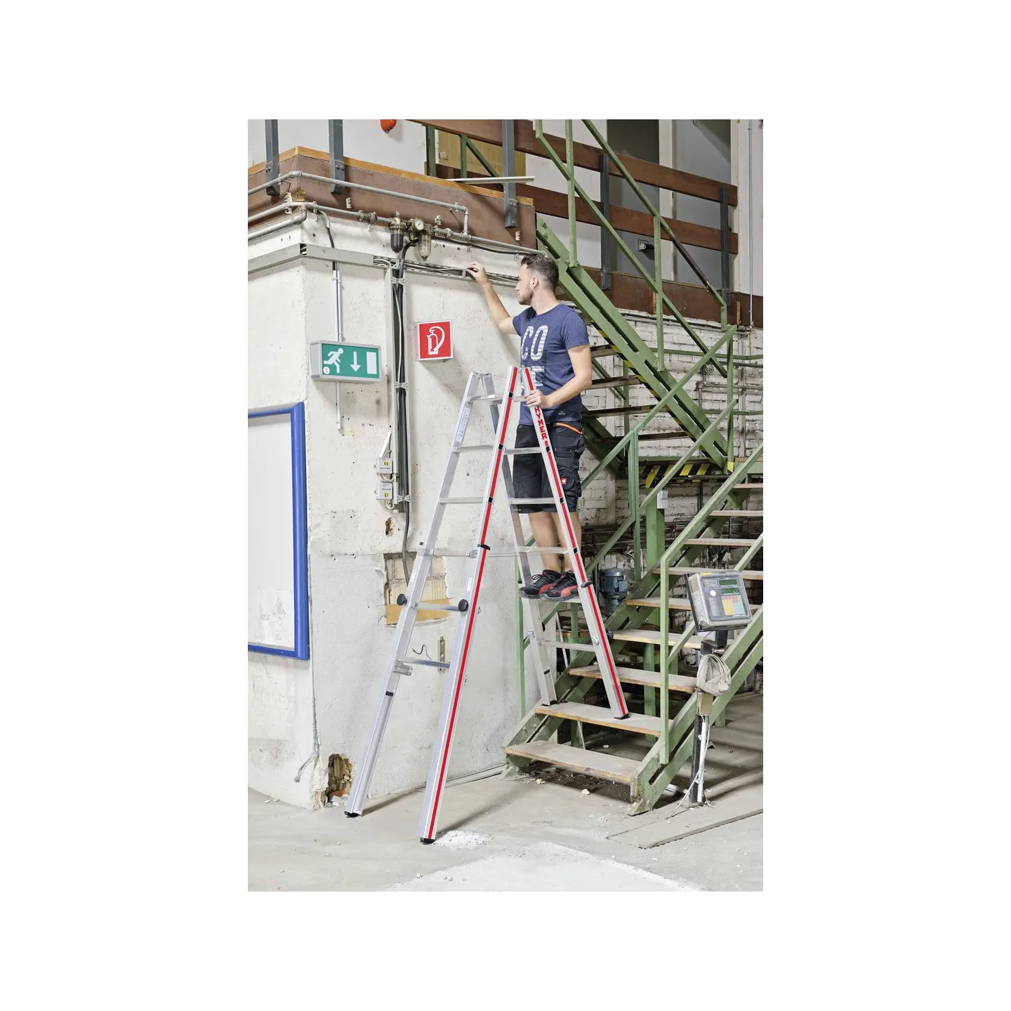 Ajuste milimétrico de los alargos para una óptima estabilidad de las escalera doble.