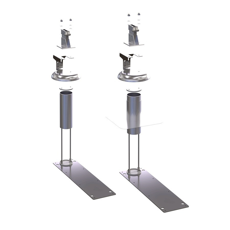 Su base BE se fija a través del sistema de impermeabilización sobre la chapa. Su diseño permite una instalación rápida y sencilla.