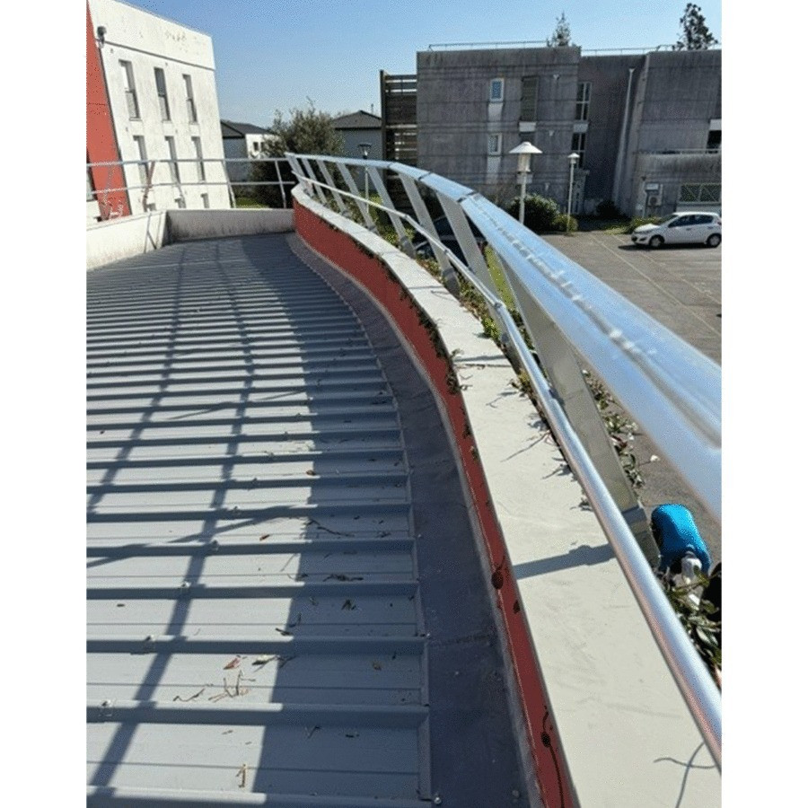Las barandillas Fastguard están fabricadas en aluminio de alta calidad, lo que garantiza una durabilidad a largo plazo y una excelente resistencia a la intemperie. El pasamanos, de forma rectangular y continua, está diseñado para respetar la estética arquitectónica de los edificios, ya sean azoteas, industriales o tradicionales. Tanto si necesita fijar su barandilla en el acrotera, una loseta de hormigón, una loseta impermeabilizada, una bandeja impermeable o una bandeja de acero, como si necesita fijarla de forma temporal de manera autoportante.