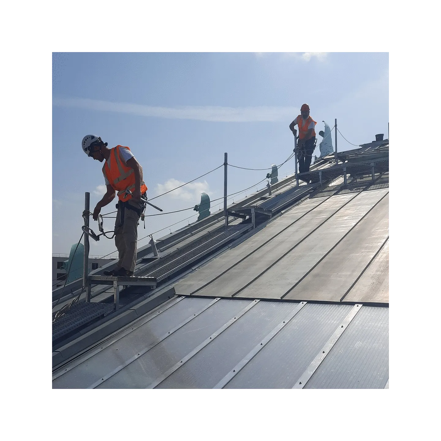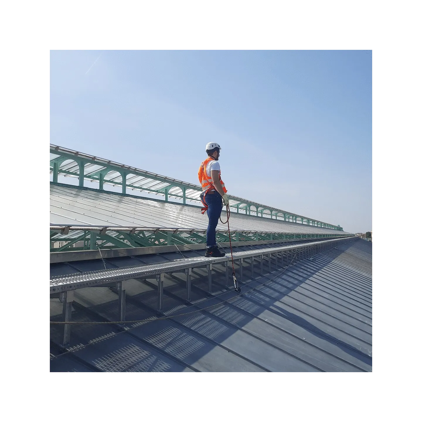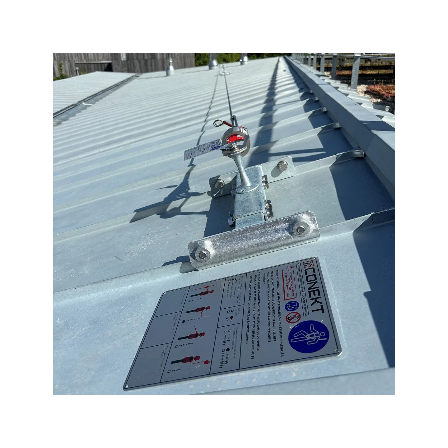 L'Echelle Européenne es un fabricante de líneas de vida a medida con cable o riel. Nuestras líneas de vida CONEKT permiten asegurar los desplazamientos y los puestos de trabajo en altura de todo tipo de personal u operadores técnicos que intervienen en un edificio o en una máquina. Las líneas de vida con riel CONEKT se fijan en bandejas secas, bandejas estancas, paneles sándwich y listones de zinc y cumplen con las normas: EN 795:2012 y TS16415:2013 tipo D.