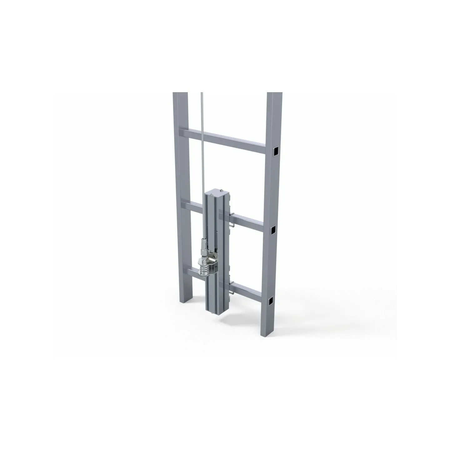 El cable se guía al inicio y a la salida de la escalera gracias a las barras de anclaje que se fijan fácilmente en los escalones de la escalera.