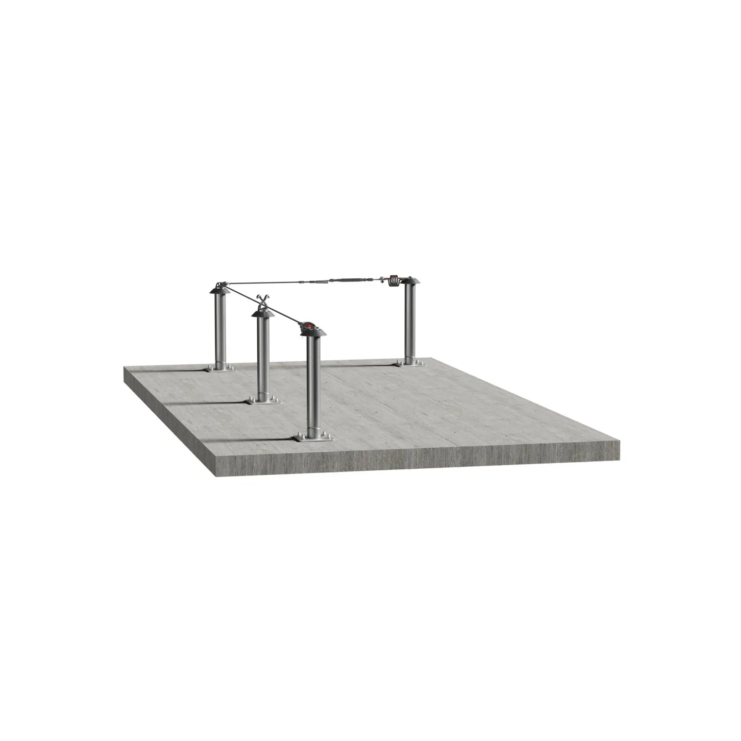 La instalación de una línea de vida de cable CONEKT sobre losa de hormigón se realiza mediante los postes rígidos de hormigón P300 o P500, según la altura deseada de 300 mm o 500 mm.