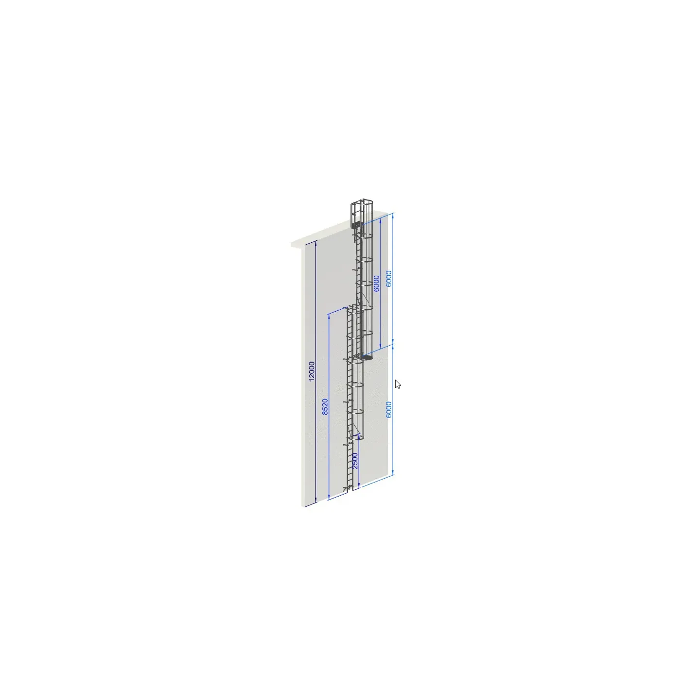 Escalera de protección dorsal - Crinolina altura 12 000 mm EN ISO 14122-4