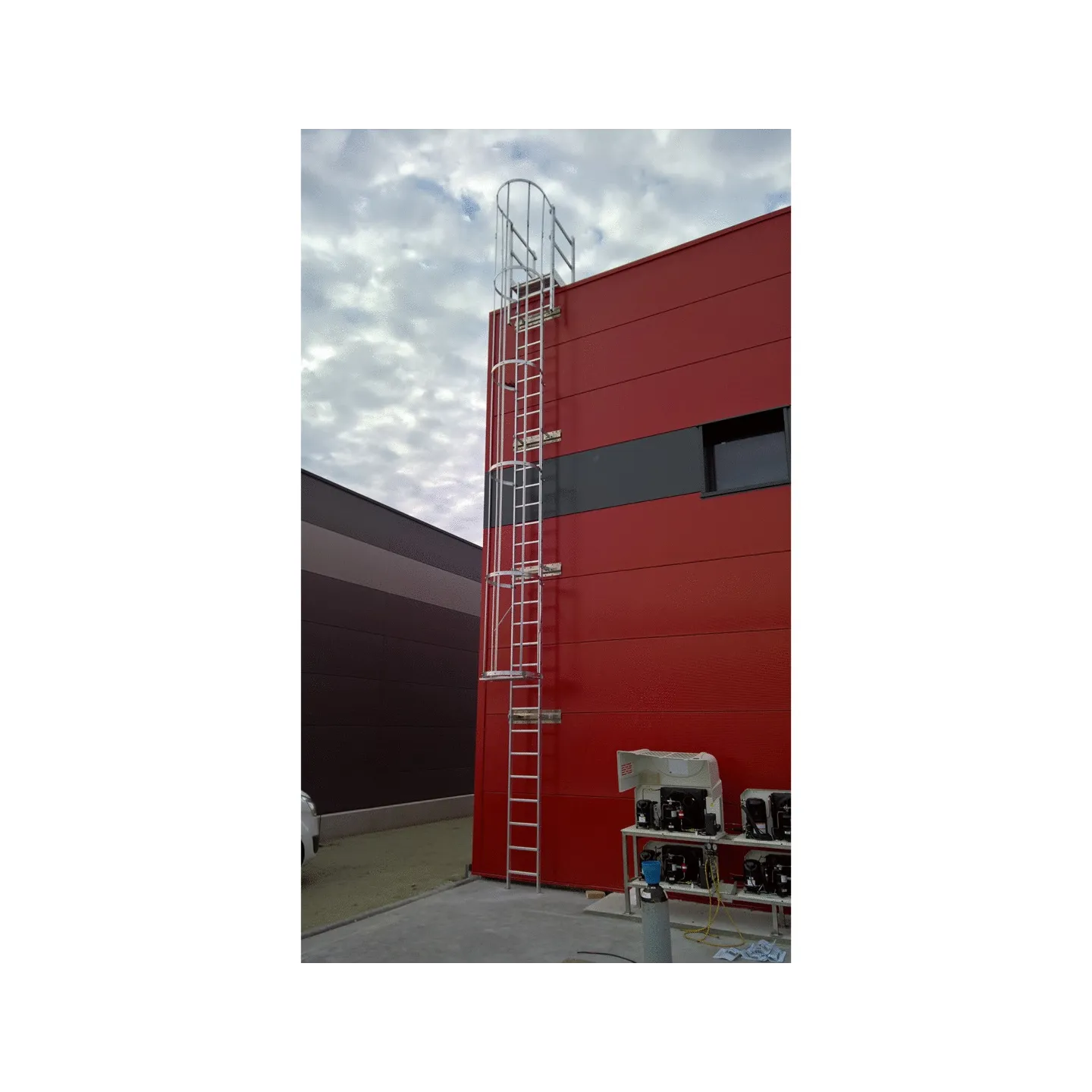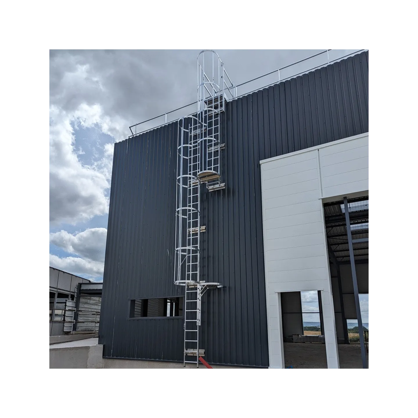 Adaptación óptima al lugar de instalación: Nuestra escalera con jaula de seguridad se adapta perfectamente a su lugar de instalación, garantizando la máxima seguridad y un uso óptimo.