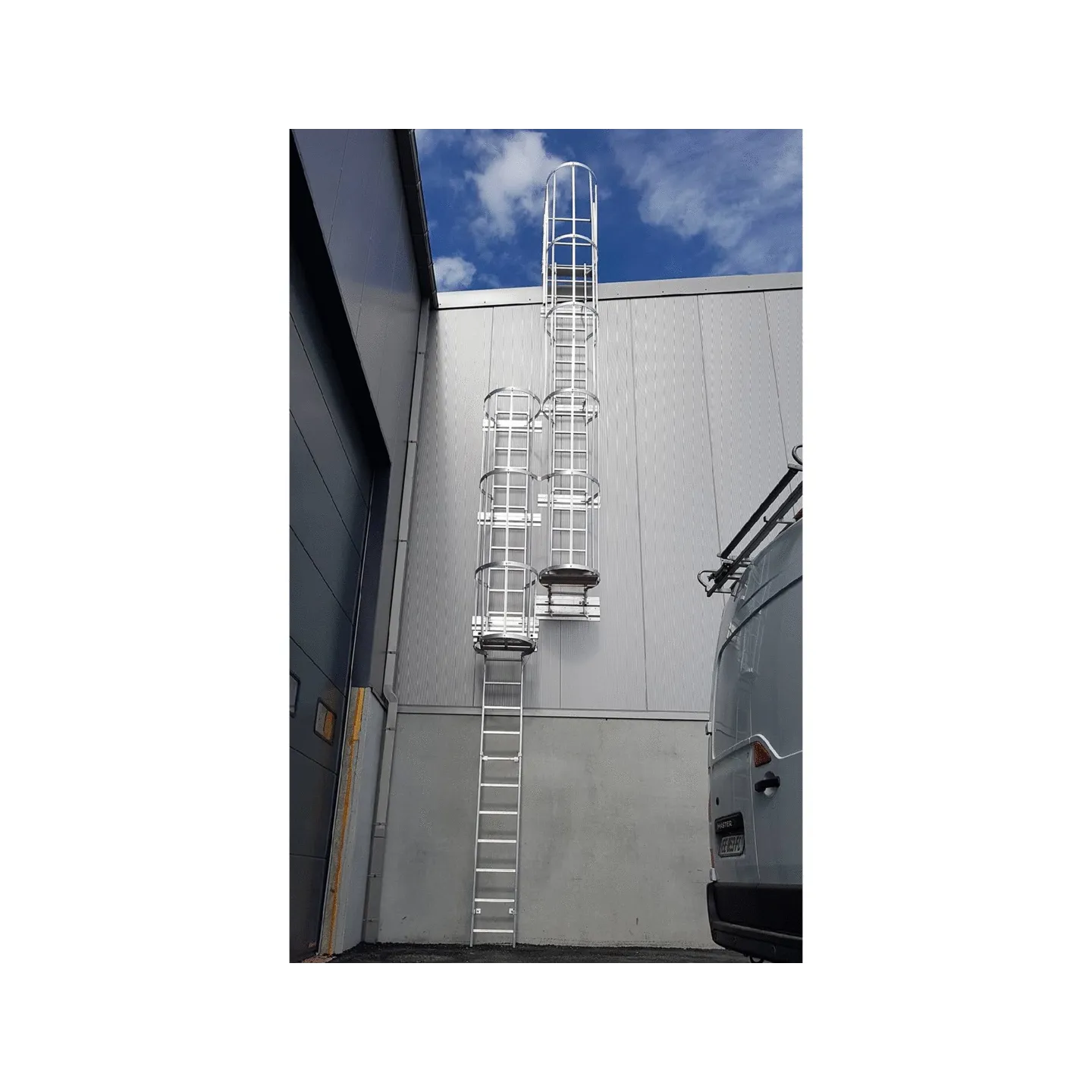 Elija nuestra escalera de protección dorsal disfrute de un producto innovador, seguro y fácil de instalar, ideal para todas sus necesidades en altura. Diseño de aluminio que no requiere mantenimiento, envío rápido en 48 horas.