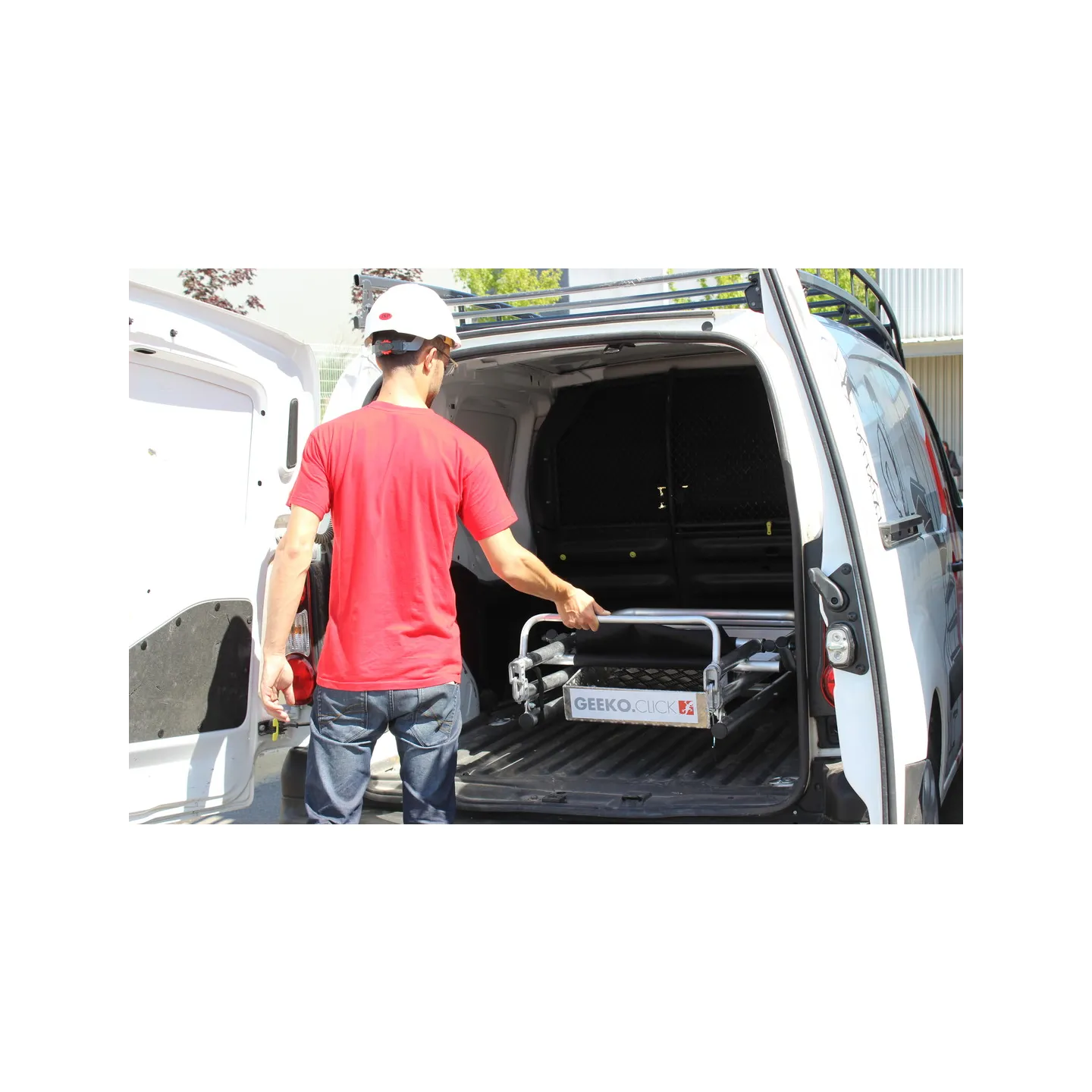 Montaje y plegado rápidos en un solo movimiento gracias a las articulaciones Ergoclick.Una vez plegada, la plataforma se adapta a todos los vehículos utilitarios.Tamaño pequeño plegado, sólo 37 cm de profundidad.