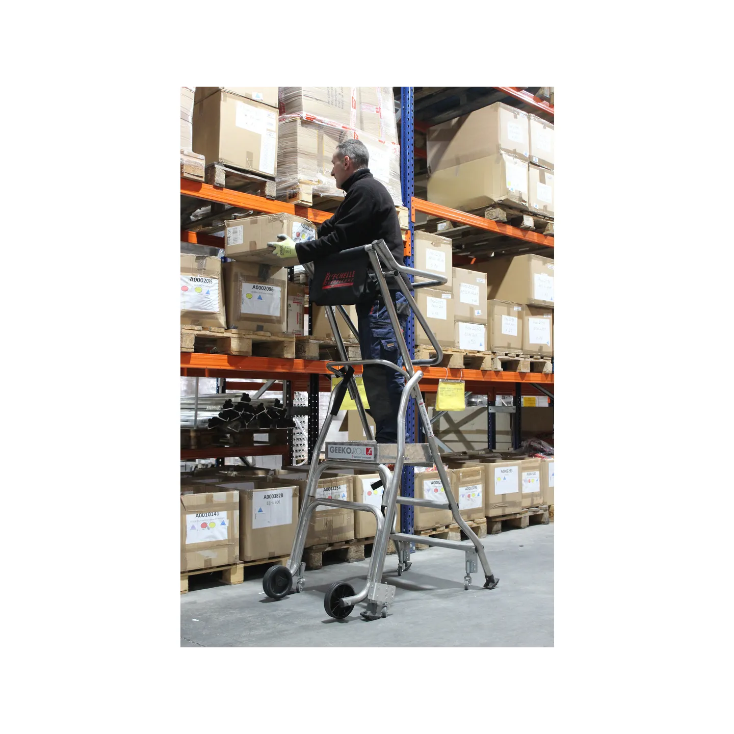Equipée d'une profonde sacoche porte-outils pour y mettre visserie et outillage volumineux et de roues escamotables, cette nouvelle plate-forme vous permettra de gagner du temps sur vos interventions de picking, de maintenance....