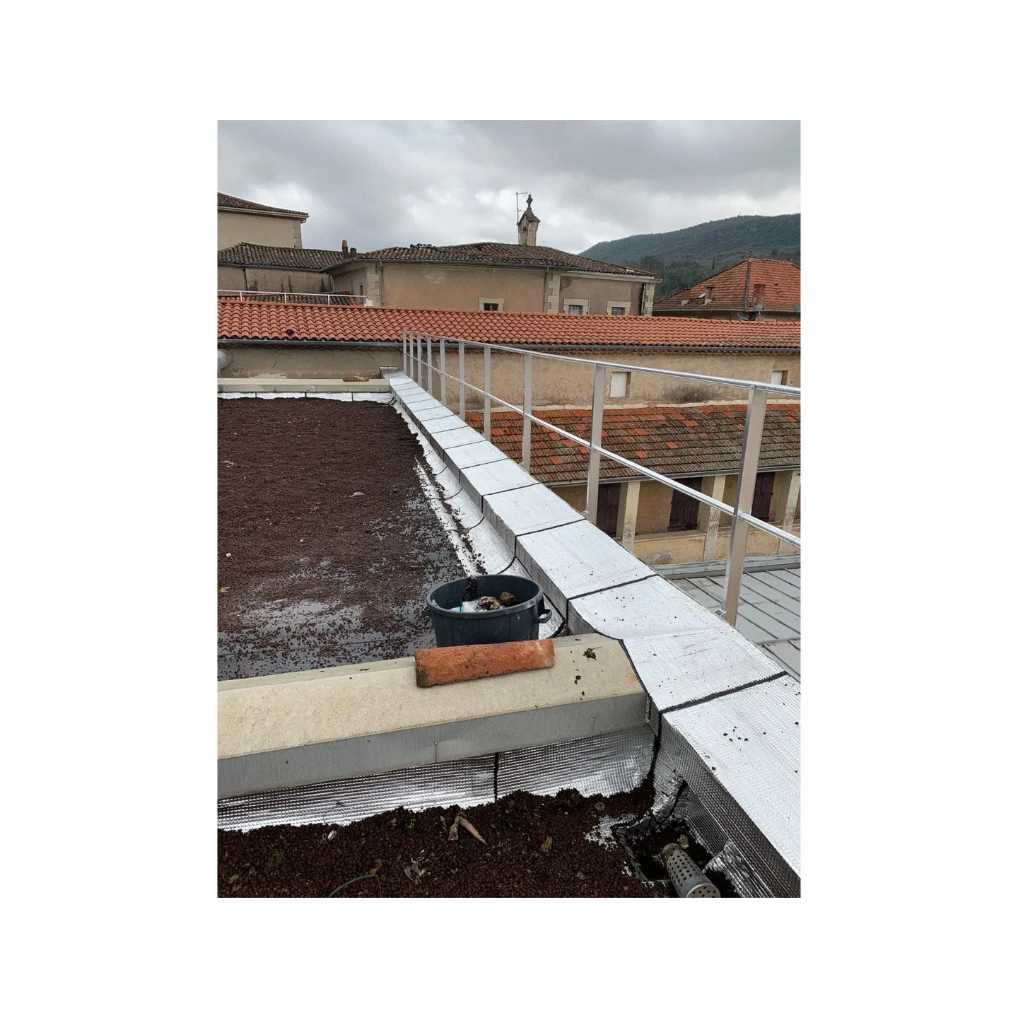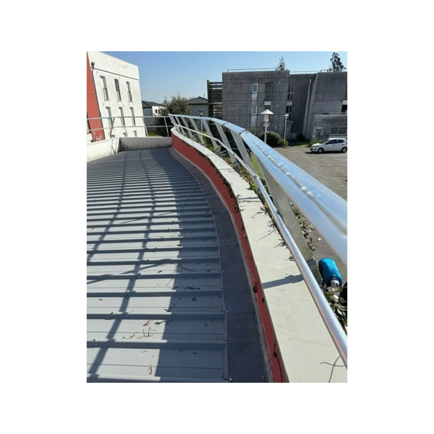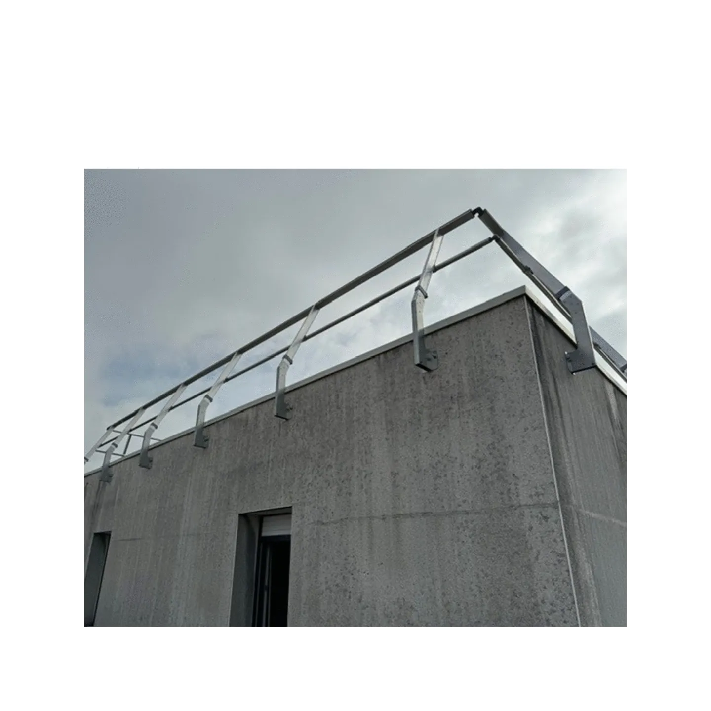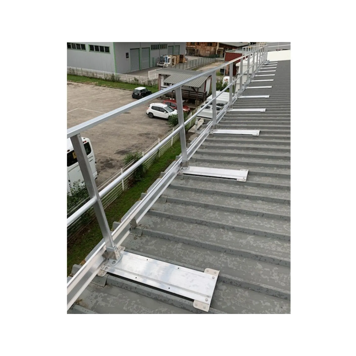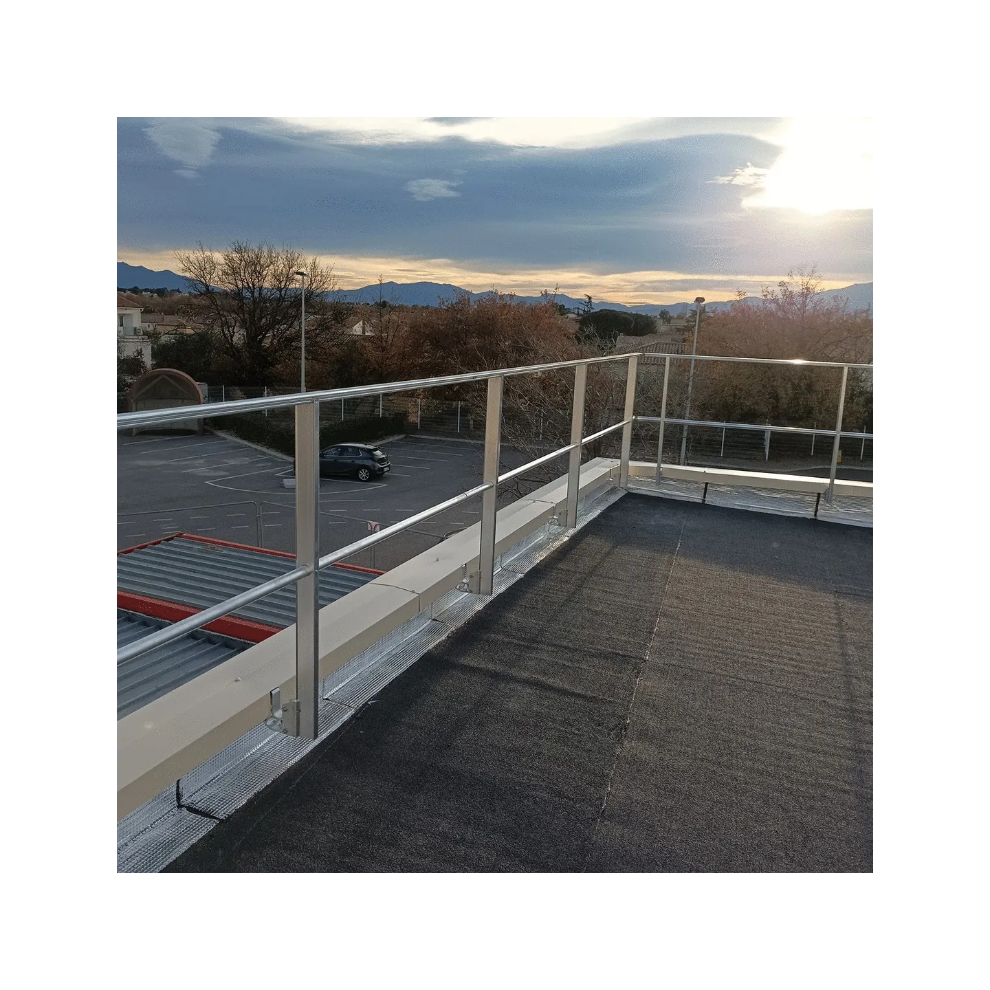 Las barandillas Fastguard están fabricadas en aluminio de alta calidad, lo que garantiza una durabilidad a largo plazo y una excelente resistencia a la intemperie. El pasamanos, de forma rectangular y continua, está diseñado para respetar la estética arquitectónica de los edificios, ya sean azoteas, industriales o tradicionales. Tanto si necesita fijar su barandilla en el acrotera, una loseta de hormigón, una loseta impermeabilizada, una bandeja impermeable o una bandeja de acero, como si necesita fijarla de forma temporal de manera autoportante.