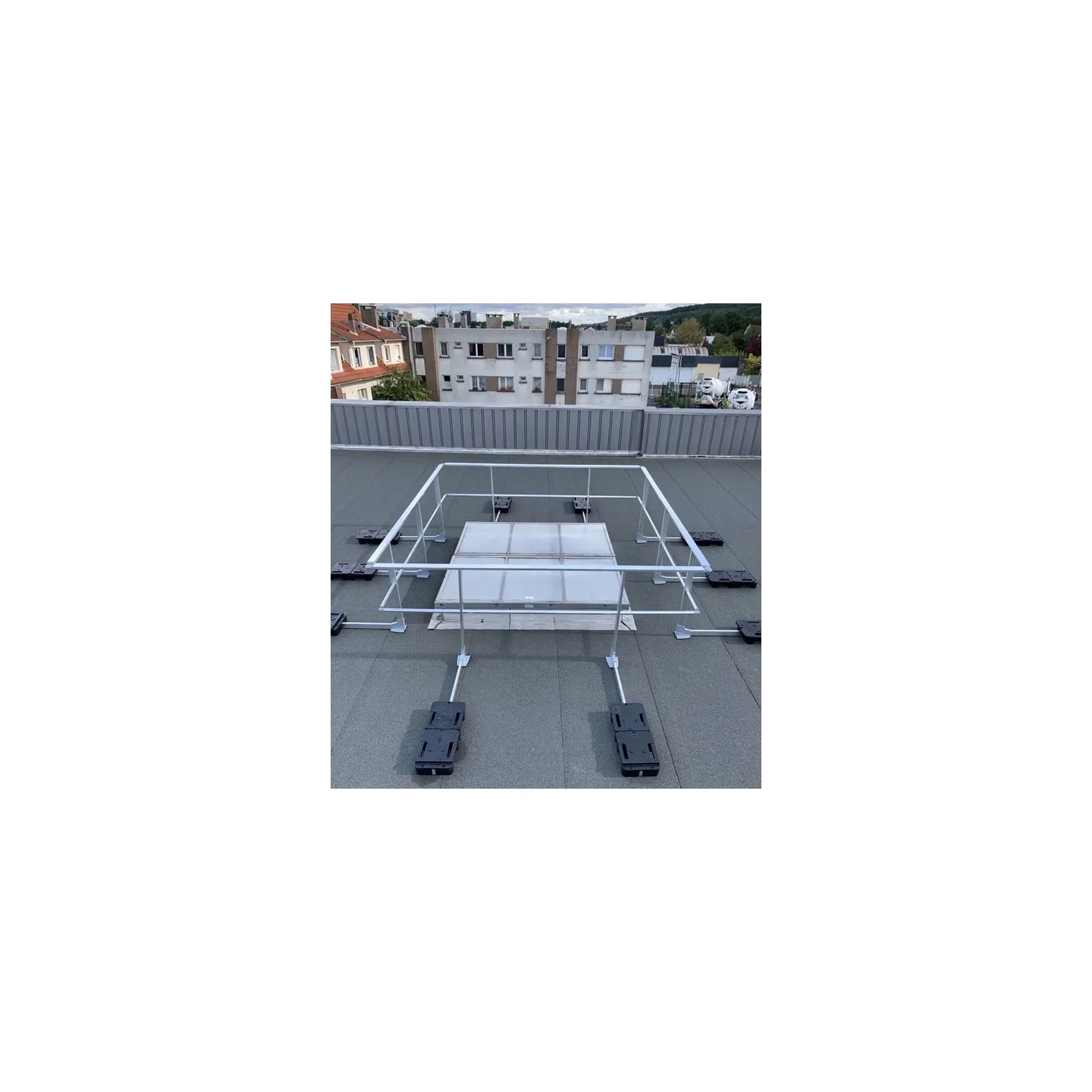 Autoportante, este dispositivo garantiza la protección colectiva contra los riesgos de caída a través de las claraboyas , chimeneas de humos, galerías de cristal en terrazas etc...