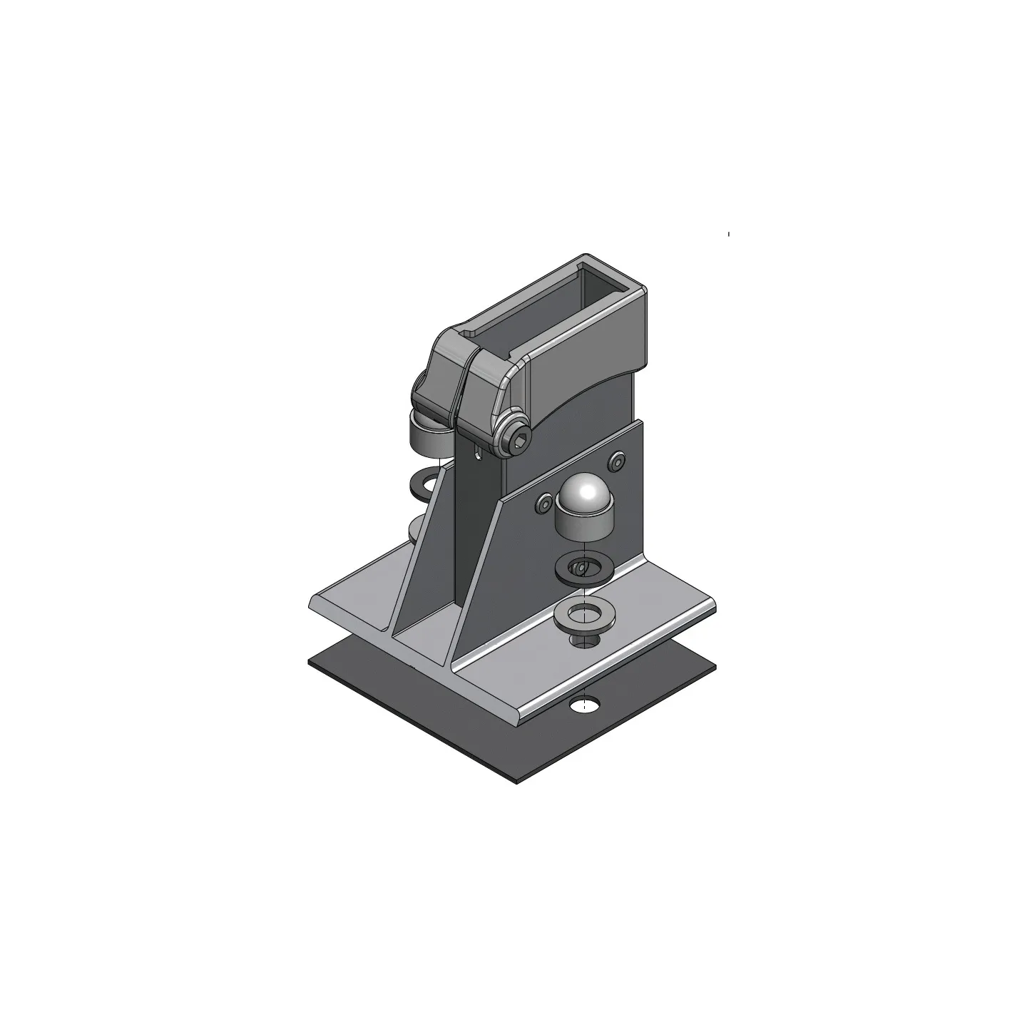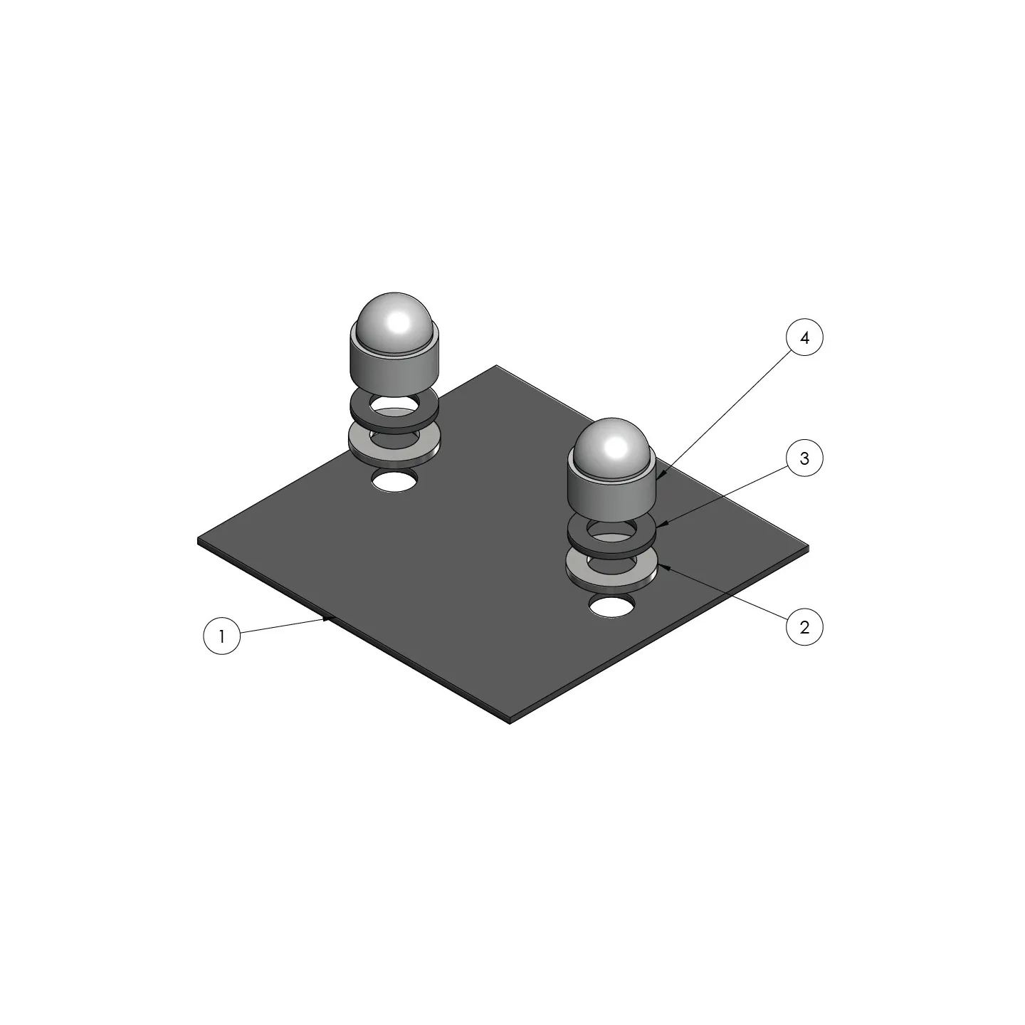 Colocar la base de caucho rep 1, luego la base plana, las arandelas de inox M12 rep 2 y de caucho rep 3, y fijar todo con anclajes M12.
